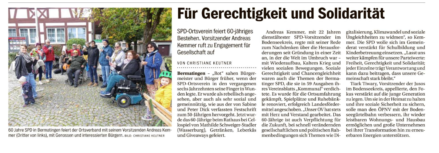 Wir feiern 2024 das 60-jährige Bestehen des SPD Ortsvereins