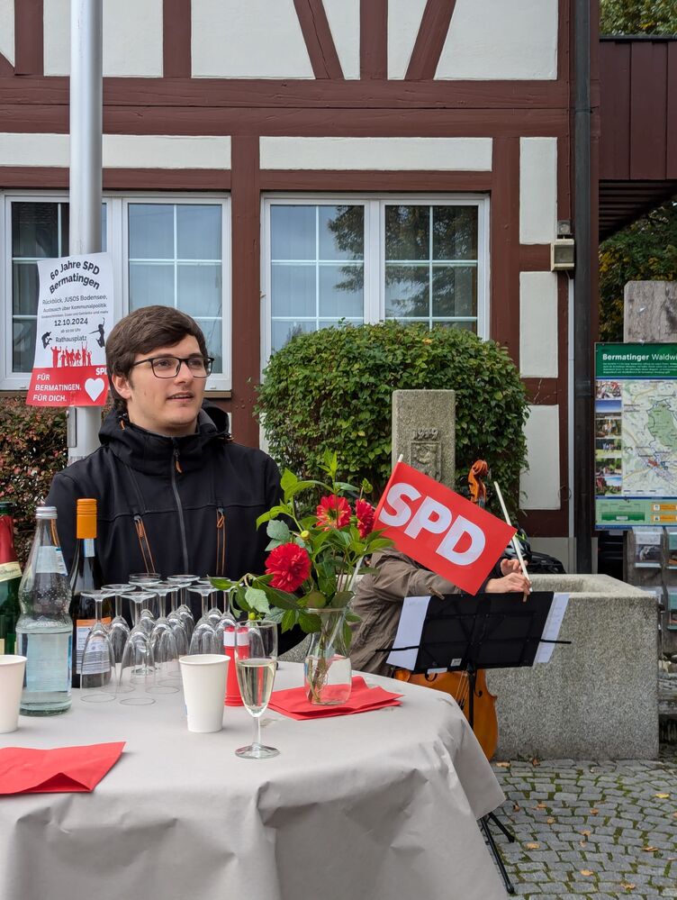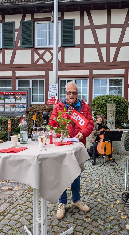 Mit einer kleinen Festrede eröffnete Andreas Kemmer die Feierlichkeiten. Von den SPD Bodenseekreis - Jusos richtete Tiark Tiwary (Kreisvorsitzender Jusos) ein Grußwort an die Genossen. Umrahmt wurde die Veranstaltung durch Frau M. Schweiger-Stadler die mit ihrem Cello für eine tolle Stimmung sorgte.